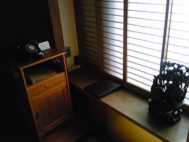お部屋にあるもの全てが、相当な年代物っぽいです。黒電話だし。